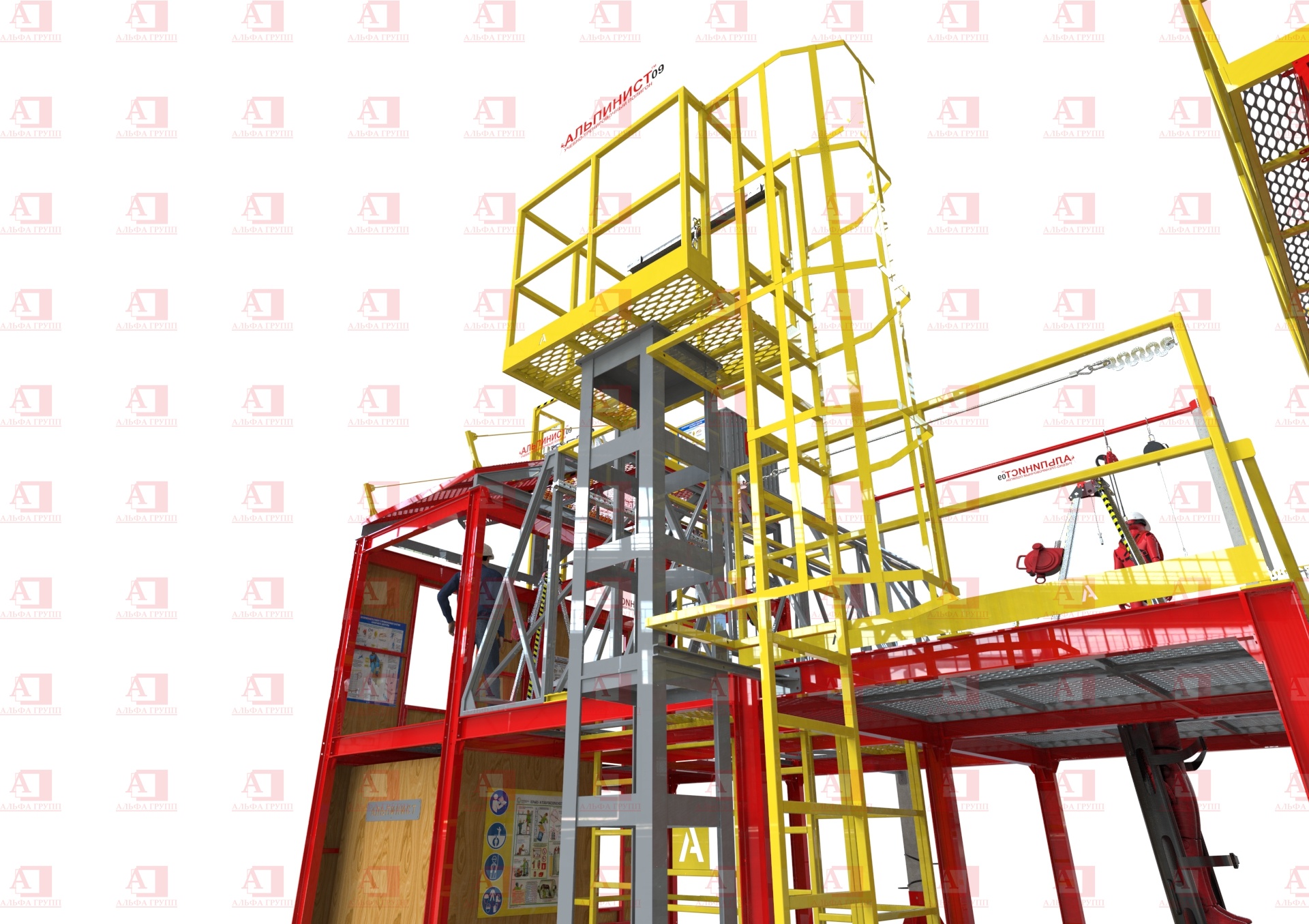 Очень функциональный, большой тренажер для практических работ на высоте для крупных учебных центров. Его возможно использовать для получения практических навыков при работах на высоте, в замкнутом пространстве и обучении спасательным работам.